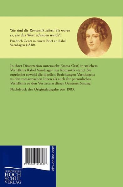 In ihrer Dissertation untersucht Emma Graf, in welchem Verhältnis Rahel Varnhagen zur Romantik stand. Sie ergründet sowohl die ideellen Beziehungen Varnhagens zu den romantischen Ideen als auch ihr persönliches Verhältnis zu den Vertretern dieser Geistesströmung.