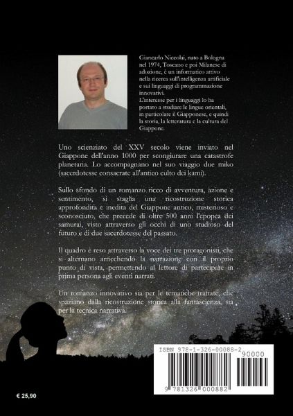 Uno scienziato del XXV secolo viene inviato nel Giappone dell'anno 1000 per scongiurare una catastrofe planetaria. Lo accompagnano nel suo viaggio due miko (sacerdotesse consacrate all'antico culto dei kami). Sullo sfondo di un romanzo ricco di avventura, azione e sentimento, si staglia una ricostruzione storica approfondita e inedita del Giappone antico, misterioso e sconosciuto, che precede di oltre 500 anni l'epopea dei samurai, visto attraverso gli occhi di uno studioso del futuro e di due sacerdotesse del passato. Il quadro è reso attraverso la voce dei tre protagonisti, che si alternano arricchendo la narrazione con il proprio punto di vista, permettendo al lettore di partecipare in prima persona agli eventi narrati. Un romanzo innovativo sia per le tematiche trattate, che spaziano dalla ricostruzione storica alla fantascienza, sia per la tecnica narrativa.