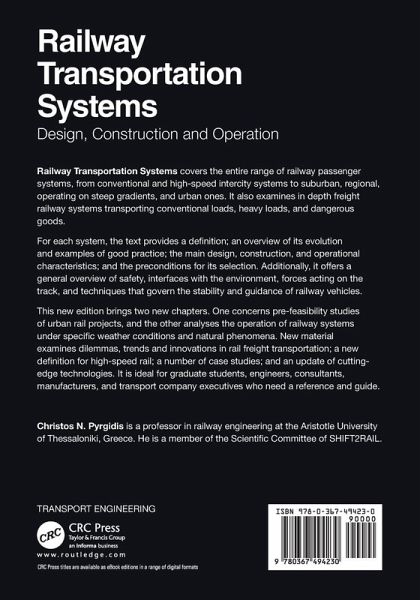 Railway Transportation Systems covers the entire range of railway passenger systems, from conventional and high-speed intercity systems to suburban, regional, operating on steep gradients, and urban ones. It also examines in depth freight railway systems transporting conventional loads, heavy loads, and dangerous goods.