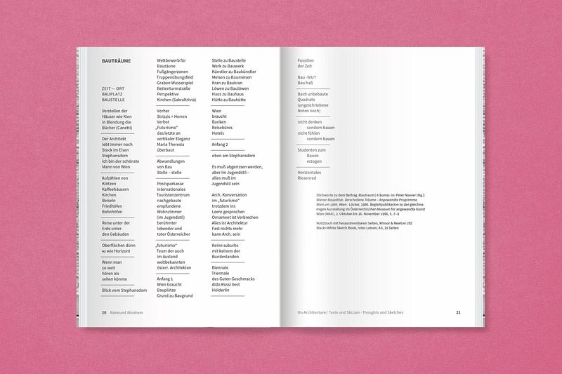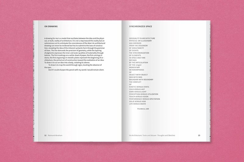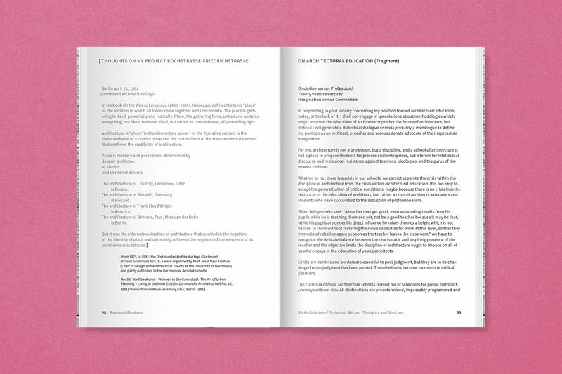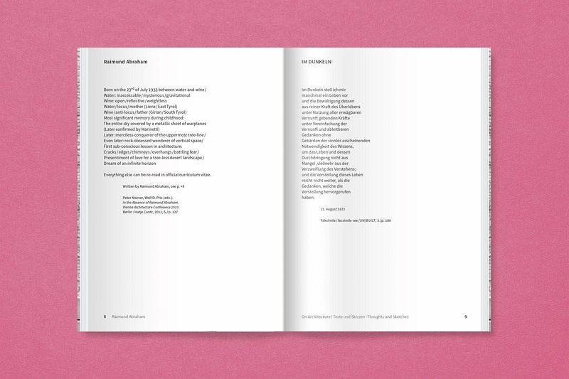 Raimund Johann Abraham (1933-2010) war ein österreichisch-US-amerikanischer Architekt und Professor für Architektur. Sein spektakulärstes Projekt ist das 2002 fertiggestellte Österreichische Kulturforum in New York, das international Aufsehen erregte. Abraham betonte immer wieder, dass Architektur nicht unbedingt gebaut werden muss - gespalten zwischen dem Willen zu bauen und der Lust zu träumen. Papier, Bleistift und die reine Sehnsucht nach dem Raum würden vollkommen ausreichen, um Architektur zu machen. Im Bauen sah er nur den letzten Schritt, um die physische Benutzbarkeit der Architektur zu ermöglichen. Sprache war für Abraham in gleicher Weise Werkzeug und Leidenschaft wie der Bleistift. Die Notizen, Statements, Interviews und Skizzen in diesem Band aus dem Archiv Marzona / Archiv der Avantgarden sind in der Sprache (Deutsch oder Englisch) und in der (Un-)Ordnung wiedergegeben, wie Raimund Abraham sie in seinen Skizzen- und Notizbüchern hinterlassen hat.