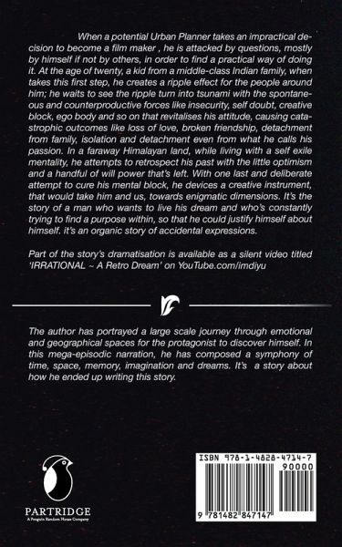 When a potential Urban Planner decides to dedicate rest his life for filmmaking he is attacked by questions, mostly by himself if not by others. At the age of twenty, a kid from a typical middleclass Indian family, when takes that desiccation for himself, he creates a ripple effect for the people surrounding him. He waits to see the ripple turn into tsunami with constant counterproductive forces like insecurity, self doubt, creative block, ego etc. that modifies his behaviour to cause catastrophic effects like loss of love, broken friendship, detachment from family, isolation and even detachment from his own passion. In a faraway Himalayan land while living with a self exile mentality, he attempts to retrospect his past with the little will power and optimism that's left, one last and deliberate attempt to cure his mental block he devices a creative instrument that would take him and us towards enigmatic dimensions. It's the story of a man who wants to be a film maker and who constantly tries to justify to himself regarding why he wants to do so. It's the story of an accidental expressionist. part of the story's dramatiation is available as a video called 'IRRATIONAL ~ A Retro Dream' on YouTube.com/imdiyu.