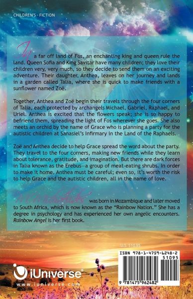 In a far off land of Fos, an enchanting king and queen rule the land. Queen Sofia and King Savitar have many children; they love their children very, very much, so they decide to send them on an exciting adventure. Their daughter, Anthea, leaves on her journey and lands in a garden called Talia, where she is quick to make friends with a sunflower named Zoë. Together, Anthea and Zoë begin their travels through the four corners of Talia, each protected by archangels Michael, Gabriel, Raphael, and Uriel, respectively. Anthea is excited that the flowers speak; she is so happy to befriend them, spreading the light of Fos wherever she goes. She also meets an orchid by the name of Grace who is planning a party for the autistic children at Sanasiel's Infirmary in the Land of the Raphaels. Zoë and Anthea decide to help Grace spread the word about the party. They travel to the four corners, making new friends while they learn about tolerance, gratitude, and imagination. But there are dark forces in Talia known as the Erebus-a group of meat-eating shrubs. In order to make it home, Anthea must be careful; even so, it's worth the risk to help Grace and the autistic children, all in the name of love.