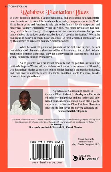 In 1850, Jonathan Thomas, a young, personable, and aristocratic Southern gentleman, has returned to his antebellum home from an Ivy League school in the North. His father is dying and Jonathan is sole heir to the family's lavish, prosperous, and renowned Rainbow Plantation. While up North, two major revelations had seriously shaken his self-image. His exposure to Northern abolitionism had permanently shaken his outlook on slavery, the South's "peculiar institution." Worse, he had begun to believe he might be a sodomite, a most wretched creature reviled by the customs of nineteenth-century American society. When he tours the plantation grounds for the first time in years, he sees that his boyhood playmate, a slave named Kumi, has matured into a black Adonis. Jonathan is instantly captivated. Now he is convinced he is a sodomite, and even worse, he is hopelessly smitten over a slave. As he grapples with his sexual proclivity and the "peculiar institution," he befriends Steven Wentworth, a social non-conformist living an esoteric lifestyle, who has a deep, hidden connection to him. Under Steven's progressive influence, and from another unlikely source - the Bible - Jonathan is able to unravel his demons and triumph in the end. This novel should be of interest to Gay, Lesbian, Bisexual, and Transgendered people, and to progressives of all colors, to history buffs, religious scholars, Feminists, and civil-libertarians.