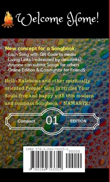 No more unknown songs in a Songbook! Small is beautiful! You can take this little book with you everywhere. Who knows where the next opportunity for singing in spiritual circles arises. Mantras, Bhajans, Kirtans, Rainbow Family and Nature Songs, Everything! Small but Wow! ;) Almost 300 songs on 85 Pocketbook pages, peppered with song lyrics, guitar chords and links. Even for small video-preview pictures was space (black and white). Because today it is possible to use QR codes and short links to lead you immediately to the videos or audios to listen to. Even if f. e. Youtube deletes the video, it will be, in the background, replaced with another one. No more dead links! And all this on the smallest possible space. Musicians will also find simple guitar chords to accompany the singers. Songs represent different directions such as Christian, Hebrew, Sufi, some German and mostly: Mantras and Rainbow Songs. (Notice the delivery duration by self published book)