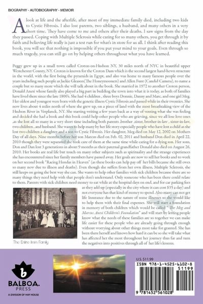 A look at life and the afterlife, after most of my immediate family died, including two kids to Cystic Fibrosis. I also lost parents, two siblings, a husband, and many others in a very short time. They have come to me and others after their deaths. I saw signs from the day they passed. Coping with Multiple Sclerosis while caring for so many others, you get through it by faith and believing life really is just a test run for what's in store for us all. I think after reading this book, you will see that nothing is impossible if you put your mind to your goals. Even through so much tragedy, you can still go on by helping others throughout what you have learned.