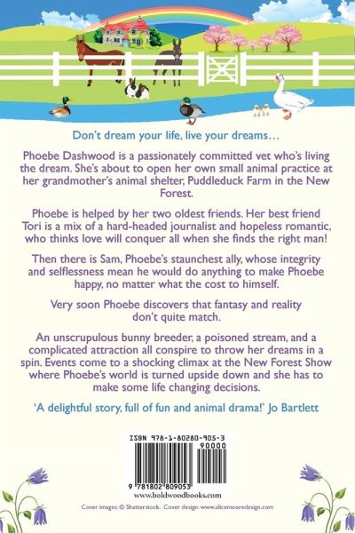Don't dream your life, live your dreams.... Phoebe Dashwood is a passionately committed vet who's living the dream. She's about to open her own small animal practice at her grandmother's animal shelter, Puddleduck Farm in the New Forest. Phoebe is helped by her two oldest friends. Her best friend Tori is a mix of hard-headed journalist and hopeless romantic, who thinks love will conquer all when she finds the right man! Then there is Sam, Phoebe's staunchest ally, whose integrity and selflessness mean he would do anything to make Phoebe happy, no matter what the cost to himself. Very soon Phoebe discovers that fantasy and reality don't quite match. An unscrupulous bunny breeder, a poisoned stream, and a complicated attraction all conspire to throw her dreams in a spin. Events come to a shocking climax at the New Forest Show where Phoebe's world is turned upside down and she has to make some life changing decisions. What everyone is saying about Puddleduck Farm: 'A delightful story, full of fun and animal drama!' Jo Bartlett 'A beautifully written, gentle story about self-acceptance, family and friendship.' Sarah Bennett 'Puddleduck Farm will find its way into your heart - a wonderfully cosy read!' Fay Keenan 'A warm, delightful read full of friendship and family with a touch of love on the horizon ... I can't wait to see what happens next at Puddleduck Farm!' Helen Rolfe 'Heart-warming, filled with engaging characters and a delightful cast of animals. I thoroughly enjoyed my visit to Puddleduck Farm!' Jill Steeples