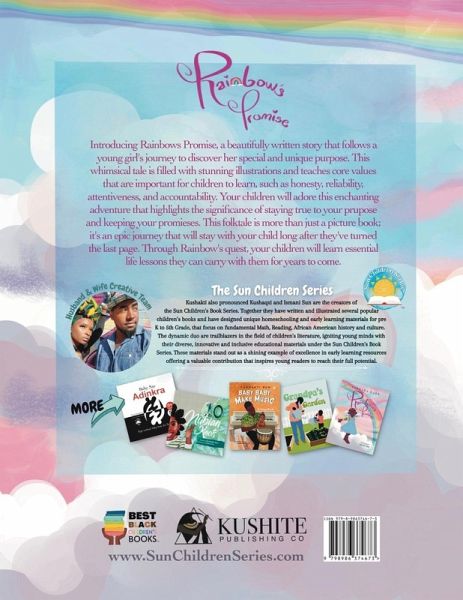 Looking for a fun and whimsical book to share with your kids? Look no further than Rainbow's Promise! This beautifully illustrated picture book will dazzle and enchant readers of all ages. This delightful tale follows the journey of a young girl who discovers her special and unique purpose. Along the way, she learns valuable lessons about responsibility, cooperation, and staying true to her word. Rainbow's Promise is more than just a charming story; it's a treasured folktale that has been passed down from generation to generation. Now, for the first time, it has been written down and shared with the world. We know that your children will love this story as much as our family does. Your children are sure to adore this adventurous story, and you'll appreciate the important life lessons it imparts. Rainbow's Promise is the perfect choice for bedtime reading or anytime your children need a dose of inspiration. Order your copy today!