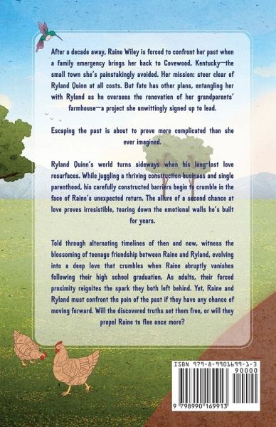 Book Blurb: After a decade away, Raine Wiley is forced to confront her past when a family emergency brings her back to Covewood, Kentucky-the small town she's painstakingly avoided. Her mission: steer clear of Ryland Quinn at all costs. But fate has other plans, entangling her with Ryland as he oversees the renovation of her grandparents' farmhouse-a project she unwittingly signed up to lead. Escaping the past is about to prove more complicated than she ever imagined. Ryland Quinn's world turns sideways when his long-lost love resurfaces. While juggling a thriving construction business and single parenthood, his carefully constructed barriers begin to crumble in the face of Raine's unexpected return. The allure of a second chance at love proves irresistible, tearing down the emotional walls he's built for years. Told through alternating timelines of then and now, witness the blossoming of teenage friendship between Raine and Ryland, evolving into a deep love that crumbles when Raine abruptly vanishes following their high school graduation. As adults, their forced proximity reignites the spark they both left behind. Yet, Raine and Ryland must confront the pain of the past if they have any chance of moving forward. Will the discovered truths set them free, or will they propel Raine to flee once more?