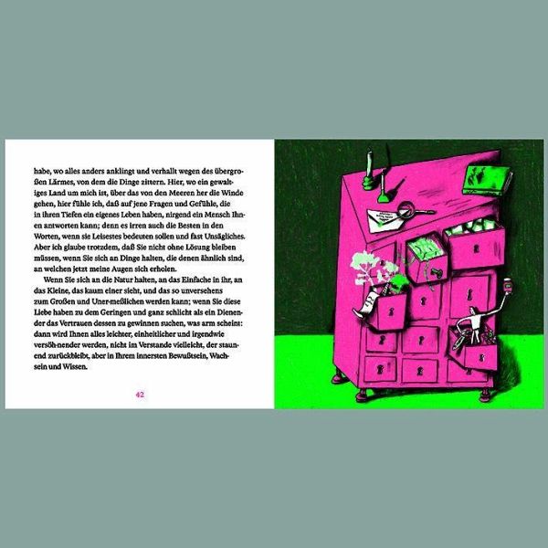 Die junge luxemburgische Illustratorin Johanna Meyers ist mit beeindruckender Tiefe in diese ruhigen Texte eingestiegen und hat sie mit ihrem Strich in hervorragender Weise verfeinert. Die FAZ-Journalistin Anna Vollmer führt die Leser:innen ein in diese wunderbare Welt der Brieffreundschaften.