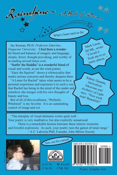 Rainshine is a collection of poetry, short stories, and things that used to be songs, together with the graphical imagery provided by others to couch the language in a way that presents each page as a unit of art unto itself. Originally published in 2010, this is a re-release with Oblectation so that it can be available to readers in the future.