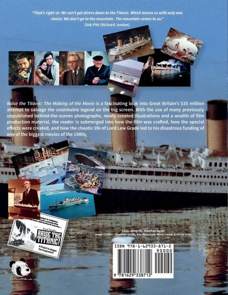 "That's right sir. We can't get divers down to the Titanic. Which leaves us with only one choice. We don't go to the mountain. The mountain comes to us." Dirk Pitt (Richard Jordan) It was claimed to be the "Big One" for the 1980s; a film adventure to rival the James Bond franchise and the movie that would make Great Britain's entertainment mogul Lord Lew Grade a threat to the Hollywood film studios. Titanic historian Jonathan Smith chronicles the ups and downs of the production of Raise the Titanic; the $35m big-screen adaptation of Clive Cussler's 1976 bestselling novel. Raise the Titanic: The Making of the Movie delves deep into the interesting and often puzzling production woes that went on to haunt Grade and his acclaimed film and television companies of ITC and Marble Arch Productions. With the use of rare and previously unpublished original production material, author Jonathan Smith takes the reader on an adventure that has been 40 years in the making, guiding you behind the scenes of the cult movie to reveal how they achieved the unthinkable and raised the unsinkable. Raise the Titanic: The Making of the Movie Vol. 1 includes in depth chapters that look into the concept art; the films original and replacement directors; Clive Cussler, the author of the novel that inspired the film; the first ever reveal of the building of the huge Titanic film model; the salvage fleet tasked to raise the Titanic; the casting of the films characters; adapting the novel; the construction of the world's largest water tank in Malta that became the North Atlantic's black abyss; a look behind the scenes of the filming of the deleted 1912 prologue; the search for the full size stand-in ship and how they converted her to look like the salvaged Titanic. Lavishly illustrated with over 1700 images over both volumes, Raise the Titanic: The Making of the Movie is a must-have book for any Titanic and shipping enthusiasts, film fans of classic and cult cinema and those who have interests in movie miniatures and special effects. The books foreword is written by award winning actor David Selby (Dr Gene Seagram in the movie) and Oscar-winning special effects stalwart John Richardson. This is Volume One of Two