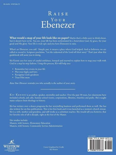 What would a map of your life look like on paper? Maybe that's a little scary to think about, but it doesn't have to be. You see, your life has been orchestrated by a benevolent God, by grace, for your good and His glory. Your life is truly epic and you have Ebenezers to raise. What's an Ebenezer, you ask? Simply put, it means a place where God helped. And as believers, we are called to record it. Scripture proclaims, "Let the redeemed of the Lord tell their story." That's just what this guidebook will assist you in doing. Kit Kenzie uses her story of candid sinfulness, betrayal and renewal to explain how to map your walk with God in a step-by-step fashion. Using this process, Kit will help you: ¿ Remember key events in your life ¿ Plot your highs and lows ¿ Recognize God's goodness ¿ Trust Him more Raise Your Ebenezer reminds you who actually is the author of your story.
