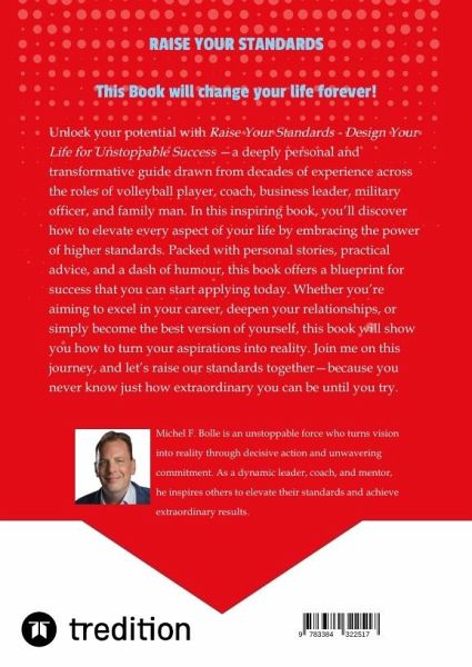 Unlock your potential with Michel F. Bolle's Raise Your Standards: Design Your Life for Unstoppable success -a deeply personal and transformative guide drawn from decades of experience across the roles of volleyball player, coach, business leader, military officer, and family man. In this inspiring book, you'll discover how to elevate every aspect of your life by embracing the power of higher standards. Packed with personal stories, practical advice, and a dash of humor, this book offers a blueprint for success that you can start applying today. Whether you're aiming to excel in your career, deepen your relationships, or simply become the best version of yourself, this book will show you how to turn your aspirations into reality. Join me on this journey, and let's raise our standards together-because you never know just how extraordinary you can be until you try.Each chapter provides 3 quick wins that you can apply immediately.
