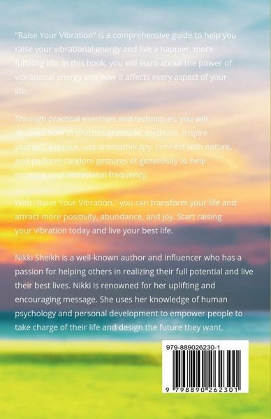 ""Raise Your Vibration"" is a comprehensive guide to help you raise your vibrational energy and live a happier, more fulfilling life. In this book, you will learn about the power of vibrational energy and how it affects every aspect of your life. Through practical exercises and techniques, you will discover how to practice gratitude, meditate, inspire yourself, exercise, use aromatherapy, connect with nature, and perform random gestures of generosity to help increase your vibrational frequency. Learn how to release negative emotions, listen to music, laugh, practice self-care, forgive, and heal your inner child. Each chapter is filled with helpful tips and exercises to help you on your journey to a higher vibration. With ""Raise Your Vibration,"" you can transform your life and attract more positivity, abundance, and joy. Start raising your vibration today and live your best life.