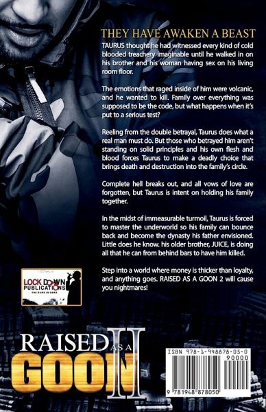 TAURUS thought he had witnessed every kind of cold blooded treachery imaginable until he walked in on his brother and his woman having sex on his living room floor. The emotions that raged inside of him were volcanic, and he wanted to kill. Family over everything was supposed to be the code, but what happens when it's put to a serious test? Reeling from the double betrayal, Taurus does what a real man must do. But those who betrayed him aren't standing on solid principles and his own flesh and blood forces Taurus to make a deadly choice that brings death and destruction into the family's circle. Complete hell breaks out, and all vows of love are forgotten, but Taurus is intent on holding his family together. In the midst of immeasurable turmoil, Taurus is forced to master the underworld so his family can bounce back and become the dynasty his father envisioned. Little does he know. his older brother, JUICE, is doing all that he can from behind bars to have him killed. Step into a world where money is thicker than loyalty, and anything goes. RAISED AS A GOON 2 will cause you nightmares!