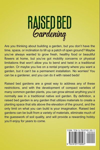 Are you thinking about building a garden, but you don't have the time, space, or inclination to till up a patch of open ground? Maybe you've always wanted to grow fresh, healthy food or beautiful flowers at home, but you've got mobility concerns or physical limitations that won't allow you to bend and twist in a traditional garden. Or maybe you live on a rental property where you want a garden, but it can't be a permanent installation. No worries! You can be a gardener, and you can do it with raised beds! Raised bed gardens are a great way to address any of these restrictions, and with the development of compact varieties of many common garden plants, you can grow almost anything you'd normally see in a traditional native soil garden. By definition, a raised bed garden is any garden that utilizes materials to create a planting space that sits above the elevation of the ground, and the only limit on what you can build is your imagination. Raised bed gardens can be built from a variety of materials, eliminate much of the guesswork of soil quality, and will provide a rewarding hobby you'll enjoy for years to come. In This Book You Will Learn: ¿ Raised Bed Gardening ¿ Designing and Building a Raised Bed Garden ¿ Choosing Plant Varieties That Thrive in Raised Beds ¿ Easy Planting and Maintenance Techniques ¿ Planting Your Seedlings ¿ Watering for Maximum Plant Health ¿ Fertilizer and Compost for Optimum Growth ¿ Dealing with Weeds, Pests, and Pathogens ¿ Maximize Space with Vertical Growing ¿ Harvesting and Overwintering ¿ On Basic Botany and Being a Gardener ¿ The Four Elements of Basic Botany BONUS! ¿ Traditional Vegetable Gardening ¿ Designing and Building a Traditional Garden ¿ Choosing Seeds and Plants for Beginners and Novices ¿ Troubleshooting Weeds, Pests, and Disease ¿ How to prevent and treat insect and pathogen problems ¿ How to use crop rotation, vertical gardening, and succession planting to maximize space ¿ How to harvest food and flowers for use in the home ¿ How to use companion planting for the benefit of your garden ¿ How to attract beneficial insects and other organisms to your plants and soil ¿ How to keep a garden journal to record your activities for future planning And much more! So if you're ready to open your eyes to a whole new perspective on gardening and the natural world, you need to open up Gardening, today. If you want to learn the whys and the hows of being a great gardener, then this is the book for you. What are you waiting for? The joys, challenges, and rewards of having an amazing garden are right at your fingertips, so get your copy and see for yourself how incredible Gardening can be. Pick up your copy of the book right now by clicking the BUY NOW button at the top of this page!