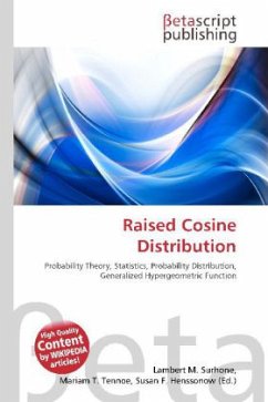 High Quality Content by WIKIPEDIA articles! In probability theory and statistics, the raised cosine distribution is a probability distribution supported on the interval [ s, + s]. The probability density function is f(x;mu,s)=frac{1}{2s} left[1+cosleft(frac{x!-!mu}{s},piright)right], for mu-s le x le mu+s and zero otherwise. The cumulative distribution function is F(x;mu,s)=frac{1}{2}left[1!+!frac{x!-!mu}{s} !+!frac{1}{pi}sinleft(frac{x!-!mu}{s},piright)right]for mu-s le x le mu+s and zero for x + s.The moments of the raised cosine distribution are somewhat complicated, but are considerably simplified for the standard raised cosine distribution. The standard raised cosine distribution is just the raised cosine distribution with = 0 and s = 1. Because the standard raised cosine distribution is an even function, the odd moments are zero. The even moments are given by: E(x^{2n})=frac{1}{2}int_{-1}^1 [1+cos(xpi)]x^{2n},dx = frac{1}{n!+!1}+frac{1}{1!+!2n},_1F_2 left(n!+!frac{1}{2};frac{1}{2},n!+!frac{3}{2};frac{-pi^2}{4}right)where ,_1F_2 is a generalized hypergeometric function.