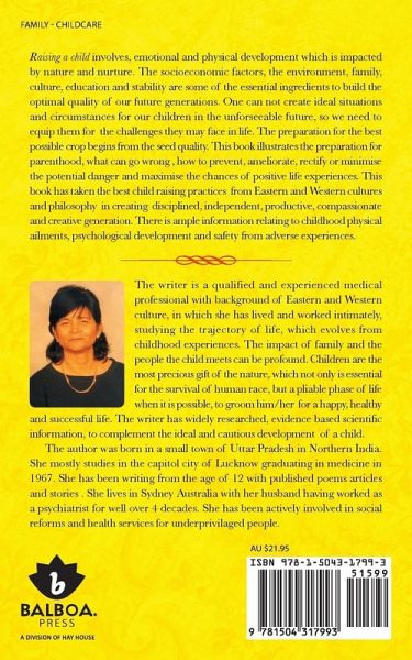 Raising a child involves, emotional and physical development which is impacted by nature and nurture. The socioeconomic factors, the environment, family, culture, education and stability are some of the essential ingredients to build the optimal quality of our future generations. One can not create ideal situations and circumstances for our children in the unforseeable future, so we need to equip them for the challenges they may face in life. The preparation for the best possible crop begins from the seed quality. This book illustrates the preparation for parenthood, what can go wrong , how to prevent, ameliorate, rectify or minimise the potential danger and maximise the chances of positive life experiences. This book has taken the best child raising practices from Eastern and Western cultures and philosophy in creating disciplined, independent, productive, compassionate and creative generation. There is ample information relating to childhood physical ailments, psychological development and safety from adverse experiences.