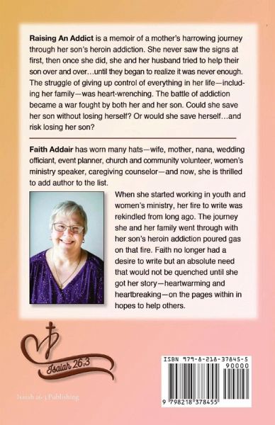 Raising An Addict is about a mother's journey through her son's heroin addiction. She never saw the signs at first, then once she did, she and her husband tried to help their son over and over ... until they began to realize it was never enough. The struggle of giving up control of everything in her life-including her family-was heart-wrenching. The battle of addiction became a war fought by both her and her son. Could she save her son without losing herself? Or would she save herself ... and risk losing her son?
