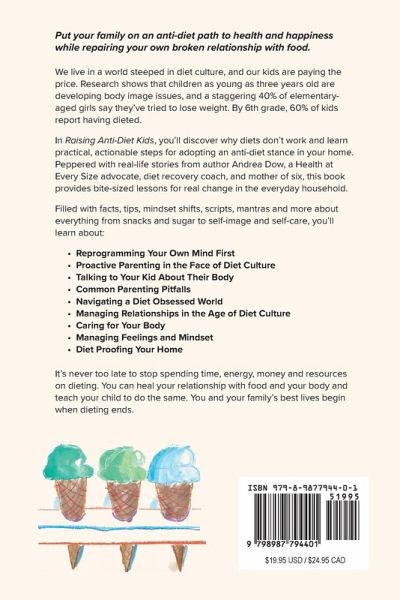 Too much time feeling obsessed with food and unable to find peace and freedom around food, much less your body? Worried that you'll pass on your quirky food habits and food and body shame to your growing child? This book is for you. Raising Anti-Diet Kids is your guide to understanding why negative habits begin around food, how to change your behaviors, the best way to talk with your kids about meals, snacks, sugar, their body and so much more. You'll finally be able to feel like you and your child can relax around food and appreciate your bodies. Inside this book, you'll learn why diets don't work, how to ditch diets for good, how to navigate our diet-obsessed world, how to avoid common parenting pitfalls when it comes to talking with kids about food and body, how to be a proactive parent in the face of diet culture, and the best ways to reconnect with and care for your body and mind. It's never too late to stop spending time, energy, money, and resources on dieting. You can repair your own relationship with food and your body and teach your child to do the same. I promise you are not broken and don't need more willpower or control. Your best life really does begin when dieting ends. It's time to give yourself and your child this invaluable gift.