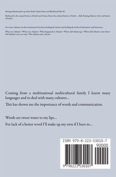 Raising Atlantis picks up where both Umma Dawn and BioHazard left off… Biohazard is the natural history of Earth and Umma Dawn the cultural history of Earth… while Raising Atlantis is the real history of Earth… Ever since Atlantis was first mentioned it has been feeding the dreams and fuelling the feuds of adventurers and historians… What was Atlantis ? Where was Atlantis ? What happened to Atlantis ? Where did Atlantis go ? Where did Atlantis come from ? Did Atlantis even ever exist ? Was Atlantis only a dream ?