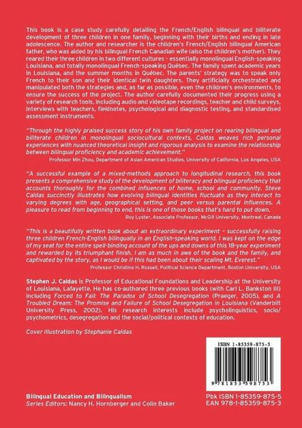 This book is a longitudinal case study carefully detailing the French/English bilingual and biliterate development of three children in one family. The book focuses most specifically on the children's acquisition of French and English during their early through late adolescence, in both their Louisiana and Québec home environments.