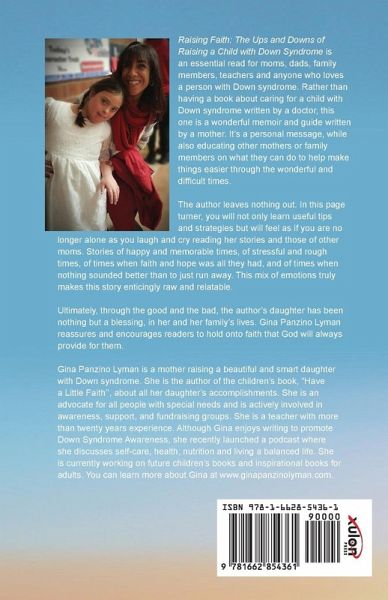 "Raising Faith: The Ups and Downs of Raising a Child with Down Syndrome is an essential read for moms, dads, family members, teachers and anyone who loves a person with Down syndrome. Rather than having a book about caring for a child with Down syndrome written by a doctor, this one is a wonderful memoir and guide written by a mother. It's a personal message, while also educating other mothers or family members on what they can do to help make things easier through the wonderful and difficult times. The author leaves nothing out. In this page turner, you will not only learn useful tips and strategies but will feel as if you are no longer alone as you laugh and cry reading her stories and those of other moms. Stories of happy and memorable times, of stressful and rough times, of times when faith and hope was all they had, and of times when nothing sounded better than to just run away. This mix of emotions truly makes this story enticingly raw and relatable. Ultimately, through the good and the bad, the author's daughter has been nothing but a blessing, in her and her family's lives. Gina Panzino Lyman reassures and encourages readers to hold onto faith that God will always provide for them."--Provided by publisher.