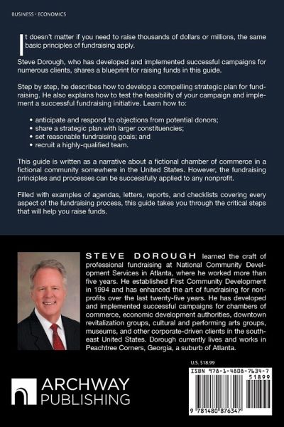 It doesn't matter if you need to raise thousands of dollars or millions, the same basic principles of fundraising apply. Steve Dorough, who has developed and implemented successful campaigns for numerous clients, shares a blueprint for raising funds in this guide. Step by step, he describes how to develop a compelling strategic plan for fundraising. He also explains how to test the feasibility of your campaign and implement a successful fundraising initiative. Learn how to: ¿ anticipate and respond to objections from potential donors; ¿ share a strategic plan with larger constituencies; ¿ set reasonable fundraising goals; and ¿ recruit a highly-qualified team. This guide is written as a narrative about a fictional chamber of commerce in a fictional community somewhere in the United States. However, the fundraising principles and processes can be successfully applied to any nonprofit. Filled with examples of agendas, letters, reports, and checklists covering every aspect of the fundraising process, this guide takes you through the critical steps that will help you raise funds.