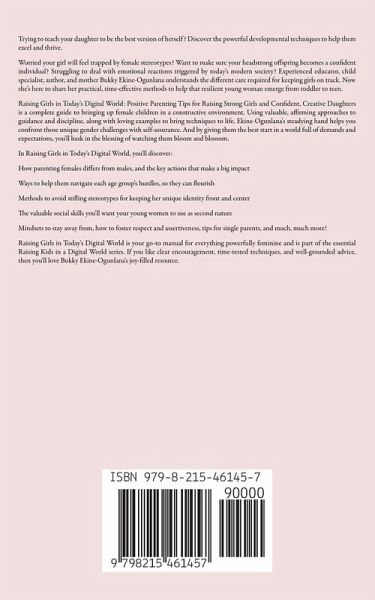 Trying to teach your daughter to be the best version of herself? Discover the powerful developmental techniques to help them excel and thrive. Worried your girl will feel trapped by female stereotypes? Want to make sure your headstrong offspring becomes a confident individual? Struggling to deal with emotional reactions triggered by today's modern society? Experienced educator, child specialist, author, and mother Bukky Ekine-Ogunlana understands the different care required for keeping girls on track. Now she's here to share her practical, time-effective methods to help that resilient young woman emerge from toddler to teen. Raising Girls in Today's Digital World: Positive Parenting Tips for Raising Strong Girls and Confident, Creative Daughters is a complete guide to bringing up female children in a constructive environment. Using valuable, affirming approaches to guidance and discipline, along with loving examples to bring techniques to life, Ekine-Ogunlana's steadying hand helps you confront those unique gender challenges with self-assurance. And by giving them the best start in a world full of demands and expectations, you'll bask in the blessing of watching them bloom and blossom. In Raising Girls in Today's Digital World, you'll discover: How parenting females differs from males, and the key actions that make a big impact Ways to help them navigate each age group's hurdles, so they can flourish Methods to avoid stifling stereotypes for keeping her unique identity front and center The valuable social skills you'll want your young women to use as second nature Mindsets to stay away from, how to foster respect and assertiveness, tips for single parents, and much, much more! Raising Girls in Today's Digital World is your go-to manual for everything powerfully feminine and is part of the essential Raising Kids in a Digital World series. If you like clear encouragement, time-tested techniques, and well-grounded advice, then you'll love Bukky Ekine-Ogunlana's joy-filled resource.