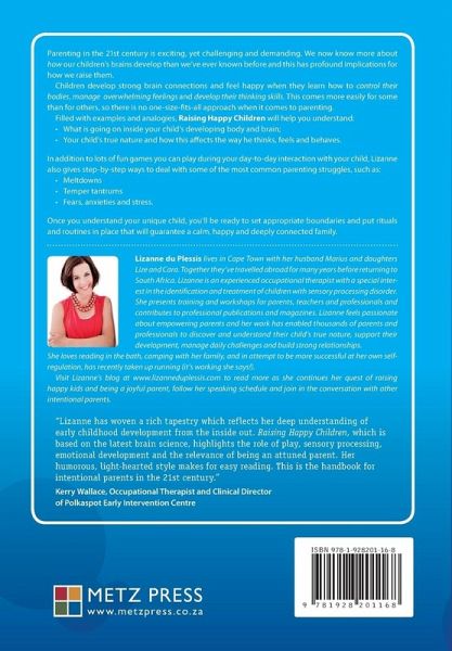 Parenting in the 21st century is easy and exciting, yet challenging and demanding. We now know more about how our children's brains develop than we've ever known before and this has profound implications for how we raise our children. Children develop strong brain connections and feel happy when they learn how to control their bodies, manage big overwhelming feelings and develop their thinking skills. These important skills come more easily for some than for others - which also means that there is no one-size-fits-all approach when it comes to parenting. Filled with stories, examples and easy to understand analogies, Raising Happy Children will help you understand: ¿ What is going on inside your child's developing body and brain; ¿ Your child's true nature and how this affects the way he thinks, feels and behaves. You'll also find lots of fun games you can play during your day-to-day interaction - crucial in the development of your child's ability to regulate his body and develop his thinking in the midst of big, overwhelming feelings. In this book, Lizanne also gives step-by-step ways to deal with some of the most common parenting struggles,as they relate to your unique child, such as: ¿ Meltdowns ¿ Temper tantrums ¿ Fears, anxieties and stress Once you understand your unique child, you'll be ready to set appropriate boundaries and put rituals and routines in place that will guarantee a calm, happy and deeply connected family.