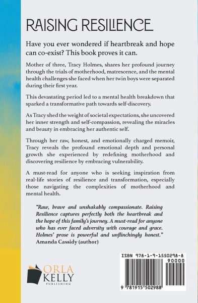 Have you ever wondered if heartbreak and hope can co-exist? This book proves it can.Mother of three, Tracy Holmes, shares her profound journey through the trials of motherhood, matrescence, and the mental health challenges she faced when her twin boys were separated during their first year.This devastating period led to a mental health breakdown that sparked a transformative path towards self-discovery.As Tracy shed the weight of societal expectations, she uncovered her inner strength and self-compassion, revealing the miracles and beauty in embracing her authentic self.Through her raw, honest, and emotionally charged memoir, Tracy reveals the profound emotional depth and personal growth she experienced by redefining motherhood and discovering resilience by embracing vulnerability. A must read for anyone seeking inspiration from real-life stories of resilience and transformation, especially those navigating the complexities of motherhood and mental health.