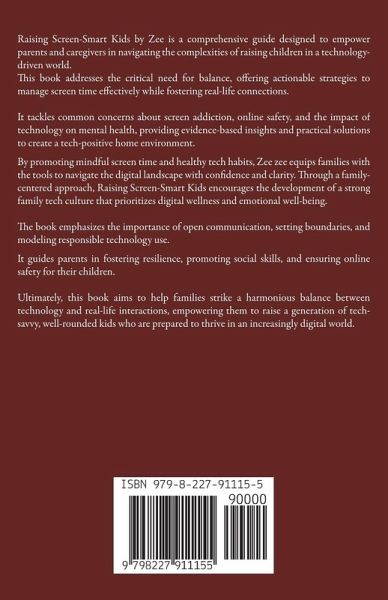 Raising Screen-Smart Kids by Zee is a comprehensive guide designed to empower parents and caregivers in navigating the complexities of raising children in a technology-driven world. This book addresses the critical need for balance, offering actionable strategies to manage screen time effectively while fostering real-life connections. It tackles common concerns about screen addiction, online safety, and the impact of technology on mental health, providing evidence-based insights and practical solutions to create a tech-positive home environment. By promoting mindful screen time and healthy tech habits, Zee zee equips families with the tools to navigate the digital landscape with confidence and clarity. Through a family-centered approach, Raising Screen-Smart Kids encourages the development of a strong family tech culture that prioritizes digital wellness and emotional well-being. The book emphasizes the importance of open communication, setting boundaries, and modeling responsible technology use. It guides parents in fostering resilience, promoting social skills, and ensuring online safety for their children. Ultimately, this book aims to help families strike a harmonious balance between technology and real-life interactions, empowering them to raise a generation of tech-savvy, well-rounded kids who are prepared to thrive in an increasingly digital world.