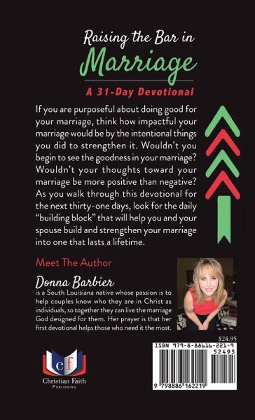 If you are purposeful about doing good for your marriage, think how impactful your marriage would be by the intentional things you did to strengthen it. Wouldn't you begin to see the goodness in your marriage? Wouldn't your thoughts toward your marriage be more positive than negative? As you walk through this devotional for the next thirty-one days, look for the daily "building block" that will help you and your spouse build and strengthen your marriage into one that lasts a lifetime.