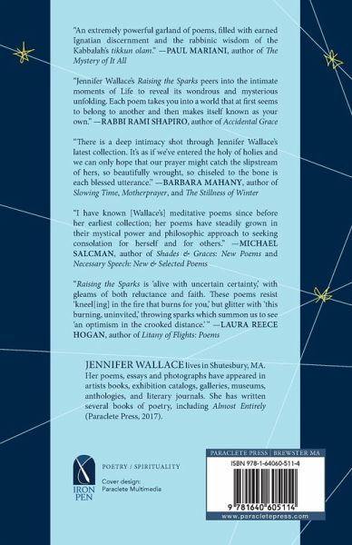 Jennifer Wallace lives in Shutesbury, MA. Her poems, essays and photographs have appeared in artists books, exhibition catalogs, galleries, museums, anthologies and literary journals. She has written several books of poetry, including Almost Entirely and Raising the Sparks.