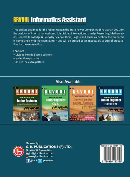 This book is designed for the recruitment in the State Power Companies of Rajasthan 2021 for the position of Informatics Assistant. It is divided into sections namely- Reasoning, Mathematics, General Knowledge & Everyday Science, Hindi, English and Technical Section. It is prepared in compliance with the exam pattern and will be proved as an impeccable source of preparation for the examination. Features Divided into dedicated sections In-depth explanation As per the exam pattern