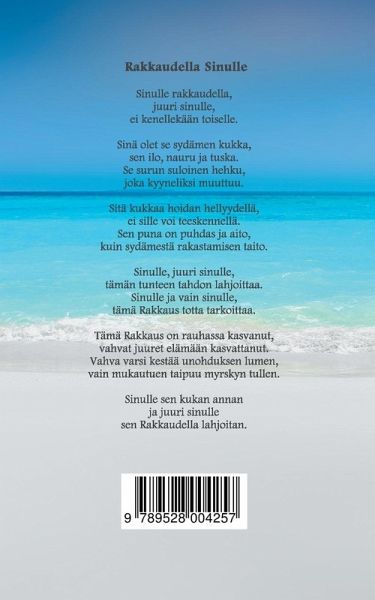 Kirja sisältää rakkausrunoja. Rakkauden eri ilmenemismuodoissa kattaen eri tunteita. Kuten ihastumisen, rakastumisen, rakastamisen ja eron kyyneleet. Matkalla opimme rakastamaan itseämme ja päädymme pyyteettömän Rakkauden syliin.
