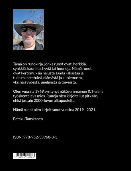 Olen vuonna 1969 syntynyt näkövammainen ict-alalla työskentelevä mies. Runoja olen kirjoitellut pitkään, ehkä jostain 2000 luvun alkupuolelta. Aktiivisemmin aloitin kirjoittelun vuonna 2019. Nämä runot ovat vuosilta 2019 - 2021.