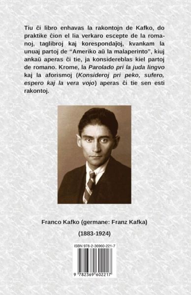 Tiu ¿i libro enhavas la rakontojn de Kafko, do praktike ¿ion el lia verkaro escepte de la romanoj, taglibroj kaj korespondäoj, kvankam la unuaj partoj de "Ameriko ä la malaperinto", kiuj ankä aperas ¿i tie, ja konsidereblas kiel partoj de romano. Krome, la Parolado pri la juda lingvo kaj la aforismoj (Konsideroj pri peko, sufero, espero kaj la vera vojo) aperas ¿i tie sen esti rakontoj.