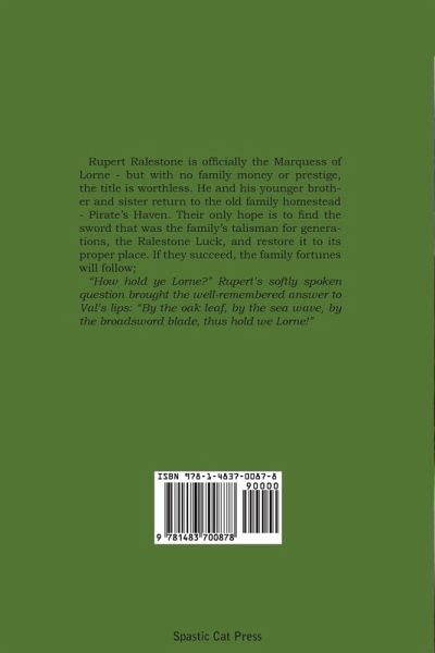 Rupert Ralestone is officially the Marquess of Lorne - but with no family money or prestige, the title is worthless. He and his younger brother and sister return to the old family homestead - Pirate's Haven. Their only hope is to find the sword that was the family's talisman for generations, the Ralestone Luck, and restore it to its proper place. If they succeed, the family fortunes will follow; "How hold ye Lorne?" Rupert's softly spoken question brought the well-remembered answer to Val's lips: "By the oak leaf, by the sea wave, by the broadsword blade, thus hold we Lorne!"