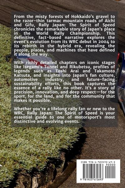 From the misty forests of Hokkaido's gravel to the razor-thin tarmac mountain roads of Aichi and Gifu, Rally Japan: The Spirit of Speed chronicles the remarkable story of Japan's place in the World Rally Championship. This definitive, fact-based narrative explores the event's evolution from its WRC debut in 2004 to its rebirth in the hybrid era, revealing the people, places, and machines that have defined it along the way. With richly detailed chapters on iconic stages like Isegami's Tunnel and Rikubetsu, profiles of legends such as Toshi Arai and Takamoto Katsuta, and insights into Japan's fan culture, automotive industry, and future-facing sustainability efforts, this book captures the essence of a rally like no other. It's a story of precision, innovation, and deep respect-for the sport, for the land, and for the community that makes it possible. Whether you're a lifelong rally fan or new to the WRC, Rally Japan: The Spirit of Speed is your essential guide to one of motorsport's most distinctive and evolving events.