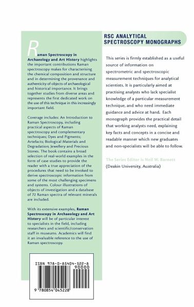 Raman Spectroscopy in Archaeology and Art History highlights the important contributions Raman spectroscopy makes as a non-destructive method for characterising the chemical composition and structure and in determining the provenance and authenticity of objects of archaeological and historical importance. It brings together studies from diverse areas and represents the first dedicated work on use of this technique in this increasingly important field. Coverage includes: An Introduction to Raman Spectroscopy, including practical aspects of Raman spectroscopy and complementary techniques; Dyes and Pigments; Artefacts; Biological Materials and Degradation; Jewellery and Precious Stones. The book contains a broad selection of real-world examples in the form of case studies to provide the reader with a true appreciation of the procedures that need to be invoked to derive spectroscopic information from some of the most challenging specimens and systems. Colour illustrations of objects of investigation and a database of 72 Raman spectra of relevant minerals are included. With its extensive examples, Raman Spectroscopy in Archaeology and Art History will be of particular interest to specialists in the field, including researchers and scientific/conservation staff in museums. Academics will find it an invaluable reference to the use of Raman spectroscopy. TOC:Section I. Introduction, Introduction to Raman Spectroscopy, Practical Raman Spectroscopy and Complementary Techniques.- Section II. Dyes and Pigments: Overview: Dyes and Pigments, Case Study: Prehistoric Art, Case Study: Painters and Decorators: Raman Spectroscopic Studies of Five Romano-British Villas and The Domis Coiedii at Suasa, Italy, Case Study: Xth Century Manuscript Beato de Valcavdo, Case Study: Micro-Raman and GC-MS of Frescoes, Case Study: Field and in situ identification of pigments in works of art by micro-Raman and visible-NIR reflectance spectroscopies: a polychrome 16th-century Italian fresco and black-coloured Etruscan pottery, Case Study: The Analysis of Dyes by SERRS.- Section III. Artefacts, Overview, Case Study: Raman spectroscopy: a powerful tool for the analysis of museum objects, Case Study: Glasses, Glazes and Ceramics - Recognition of the Ancient Technology from the Raman Spectra, Case Study: Fifteen Years of Artefacts Investigations by Raman Microscopy, Case Study: Phase Analysis of Third Millenium Syrian Ceramics by Micro-Raman Spectroscopy.- Secion IV. Biological Materials and Degradation, Overview: Biological Materials and Degradation, Case Study: Raman Spectroscopy and Archaeological Biomaterials: Ochred Bones and Resin Tembetá, Case Study: Chinese Scrolls and other Fluorescent samples, Case Study: Ancient Textile Fibres, Case Study: Application of Raman spectroscopy to corrosion products, Overview: Jewellery and precious stones, Case Study: Diamonds, Gemstones and Pearls: From the Past to the Present, Case Study: Analysis of nephrite jade using Raman microscopy and X-ray fluorescence spectroscopy, Case Study: Mesoamerican Jade.- Section VI. Databases, Database of 74 Raman Spectra of Standard Minerals of relevance to metal corrosion, stained glass or Prehistoric rock art.- Section VII. Summary, Summary and Future.