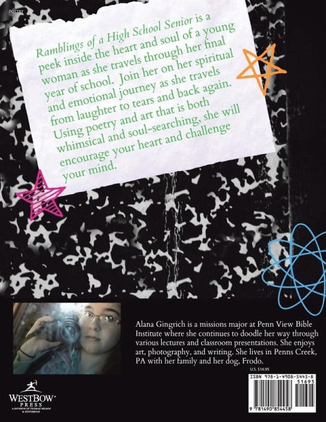 Ramblings of a High School Senior is a peek inside the heart and soul of a young woman as she travels through her final year of school. Join her on her spiritual and emotional journey as she travels from laughter to tears and back again. Using poetry and art that is both whimsical and soul-searching, she will encourage your heart and challenge your mind.