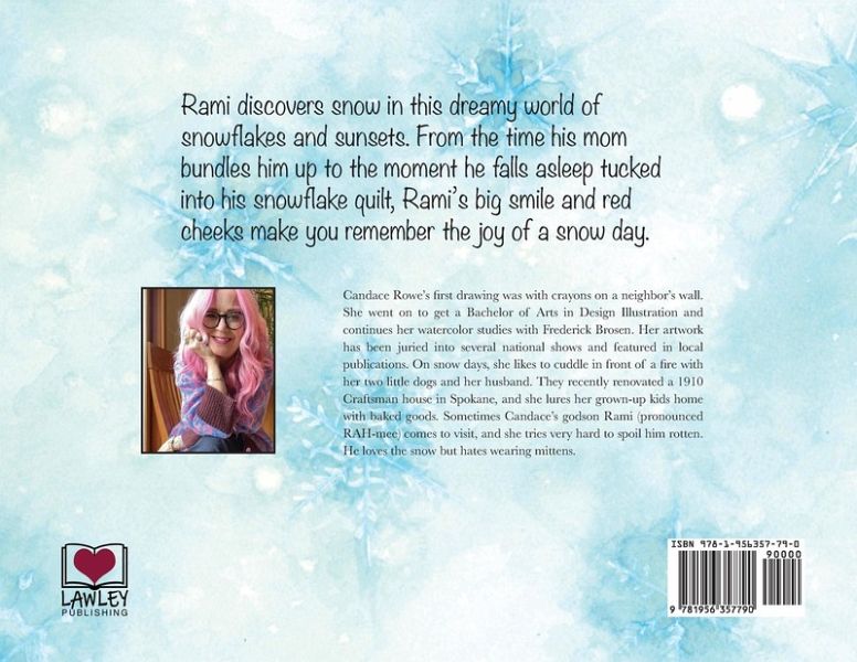 Rami discovers snow in this dreamy world of snowflakes and sunsets. From the time his mom bundles him up to the moment he falls asleep tucked into his snowflake quilt, Rami's big smile and red cheeks make you remember the joy of a snow day.