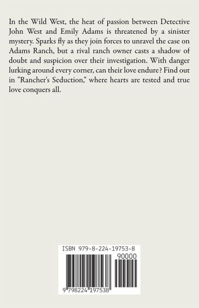 In the Wild West, the heat of passion between Detective John West and Emily Adams is threatened by a sinister mystery. Sparks fly as they join forces to unravel the case on Adams Ranch, but a rival ranch owner casts a shadow of doubt and suspicion over their investigation. With danger lurking around every corner, can their love endure? Find out in "Rancher's Seduction," where hearts are tested and true love conquers all.