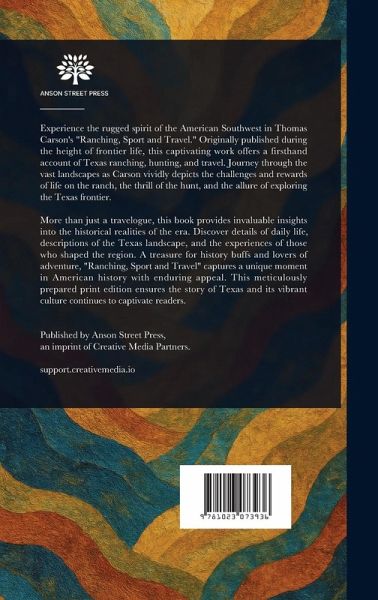 Experience the rugged spirit of the American Southwest in Thomas Carson's "Ranching, Sport and Travel." Originally published during the height of frontier life, this captivating work offers a firsthand account of Texas ranching, hunting, and travel. Journey through the vast landscapes as Carson vividly depicts the challenges and rewards of life on the ranch, the thrill of the hunt, and the allure of exploring the Texas frontier. More than just a travelogue, this book provides invaluable insights into the historical realities of the era. Discover details of daily life, descriptions of the Texas landscape, and the experiences of those who shaped the region. A treasure for history buffs and lovers of adventure, "Ranching, Sport and Travel" captures a unique moment in American history with enduring appeal. This meticulously prepared print edition ensures the story of Texas and its vibrant culture continues to captivate readers. This work has been selected by scholars as being culturally important, and is part of the knowledge base of civilization as we know it. This work is in the public domain in the United States of America, and possibly other nations. Within the United States, you may freely copy and distribute this work, as no entity (individual or corporate) has a copyright on the body of the work. Scholars believe, and we concur, that this work is important enough to be preserved, reproduced, and made generally available to the public. We appreciate your support of the preservation process, and thank you for being an important part of keeping this knowledge alive and relevant.