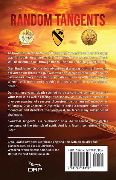 As Hawk lies on the bottom of the pool paralyzed he realizes the gypsy was right again. How long can he hold his breath before someone notices? Will he be able to pull through this to finish the remaining predictions? Greg Hawk's memoir of a life's adventure takes a drastic turn at the end of a divorce as he listens to a gypsy lady in New Zealand predict things on the path ahead. Every obstacle on his path in life has put him on another tangent of learning and struggle, at times driving him to the edge of defeat. During these years, death seemed to be a constant companion as he witnessed it, as well as facing it personally. As a soldier, a husband, a divorcee, a partner of a successful construction business in Denver, owner of Fantasy Dive Charters in Australia, to being a treasure hunter in the mountains and desert of the Southwest, he faced many self-imposed challenges." Random Tangents is a celebration of a life well-lived, of obstacles overcome, of the triumph of spirit. And let's face it, sometimes a little luck."