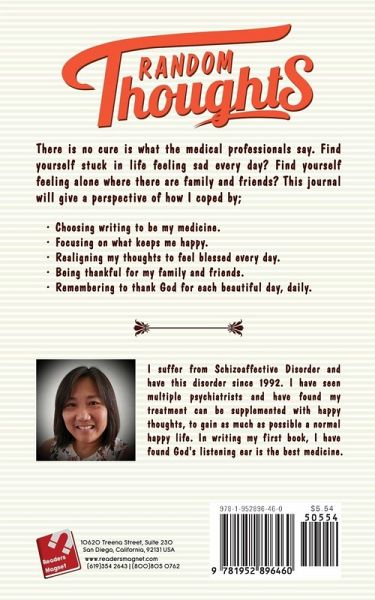 There is no cure is what the medical professionals say. Find yourself stuck in life feeling sad every day? Find yourself feeling alone where there are family and friends? This journal will give a perspective of how I coped by; ¿ Choosing writing to be my medicine. ¿ Focusing on what keeps me happy. ¿ Realigning my thoughts to feel blessed every day. ¿ Being thankful for my family and friends. ¿ Remembering to thank God for each beautiful day, daily.