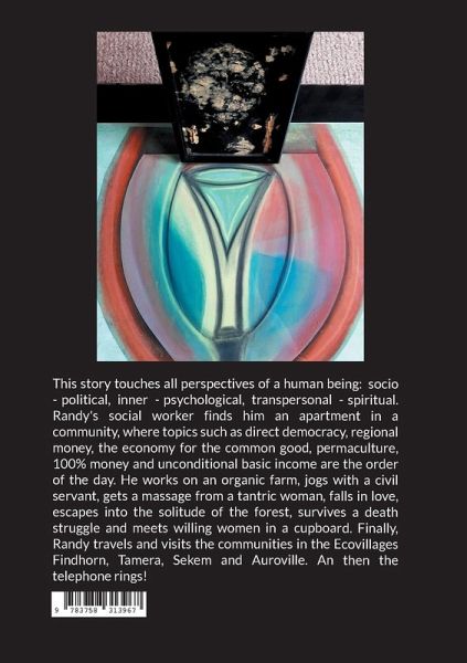 This story touches all perspectives of a human being: socio-political, inner-psychological, transpersonal-spiritual. Randy's social worker finds him an apartment in a community, where topics such as democracy, regional money, the economy for the common good, permaculture,100% money and unconditional basic income are the order of the day. He works on an organic farm, jogs with a civil servant, gets a massage from a tantric woman, falls in love, escapes into the solitude of the forest, survives a death struggle and meets willing women in a cupboard. Finally, Randy travels and visits the communities in the Ecovillages Findhorn, Tamera, Sekem and Auroville. And then the telephone rings! Excerpt from one of the first feedbacks: "I came across this book by chance. The title caught my interest. But I feared a very complicated work; I like things to be simple, clear, and intuitively comprehensible. But my first glance at the book reassured me. It seemed to be written in a generally understandable way. This was confirmed as the book progressed. Technical terms were explained, and I could understand most of the theories on first reading. I found Kushala's first question to Randy rather unworldly if you know the 'normal world'. And yet Kushala is just like that. She belongs to an educated elite who don't really know how people out there think and speak. But that's exactly why they want the 'normal' Randy in the community. I really liked him right from the start. For a 'normal guy', as I have met many out there, he is surprisingly open-minded and open-hearted. He doesn't understand everything, but he gets involved. So much so that he quickly experiences the positive aspects of meditation and the other spiritual and physical benefits. I think that's great; he doesn't seem to have any deep resistance to these experiences, he really just seems to be inexperienced in this area. So, he is clearly a person who wants to develop in this positive direction, and then does so. The book captivated me. I started reading it in one evening, and one evening later I had already read the whole thing. Thank you for the great book and the great story. The message is great. The writing style is understandable. The story is exciting. This is a book I will recommend and give as a gift. This is also a good book as a basis for discussions and conversations in writing and reading groups."