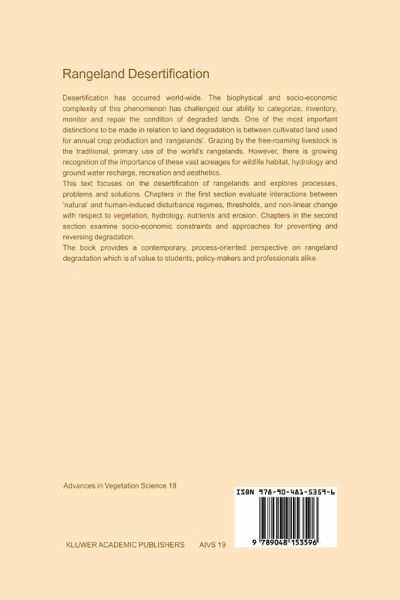 This text focuses on the desertification of rangelands and explores processes, problems and solutions. Chapters in the first section evaluate interactions between `natural' and human-induced disturbance regimes, thresholds, and non-linear change with respect to vegetation, hydrology, nutrients and erosion. Chapters in the second section examine socio-economic constraints and approaches for preventing and reversing degradation.
