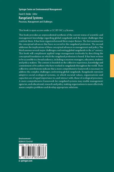 This book provides an unprecedented synthesis of the current status of scientific and management knowledge regarding global rangelands and the major challenges that confront them. It has been organized around three major themes. The first summarizes the conceptual advances that have occurred in the rangeland profession. The second addresses the implications of these conceptual advances to management and policy. The third assesses several major challenges confronting global rangelands in the 21st century. This book will compliment applied range management textbooks by describing the conceptual foundation on which the rangeland profession is based. It has been written to be accessible to a broad audience, including ecosystem managers, educators, students and policy makers. The content is founded on the collective experience, knowledge and commitment of 80 authors who have worked in rangelands throughout the world. Their collective contributions indicate that a more comprehensive framework is necessary to address the complex challenges confronting global rangelands. Rangelands represent adaptive social-ecological systems, in which societal values, organizations and capacities are of equal importance to, and interact with, those of ecological processes. A more comprehensive framework for rangeland systems may enable management agencies, and educational, research and policy making organizations to more effectively assess complex problems and develop appropriate solutions.